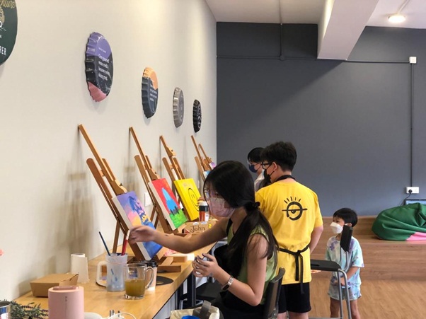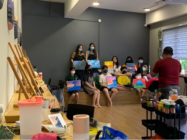 Students taking part in a Acrylic Painting Workshop